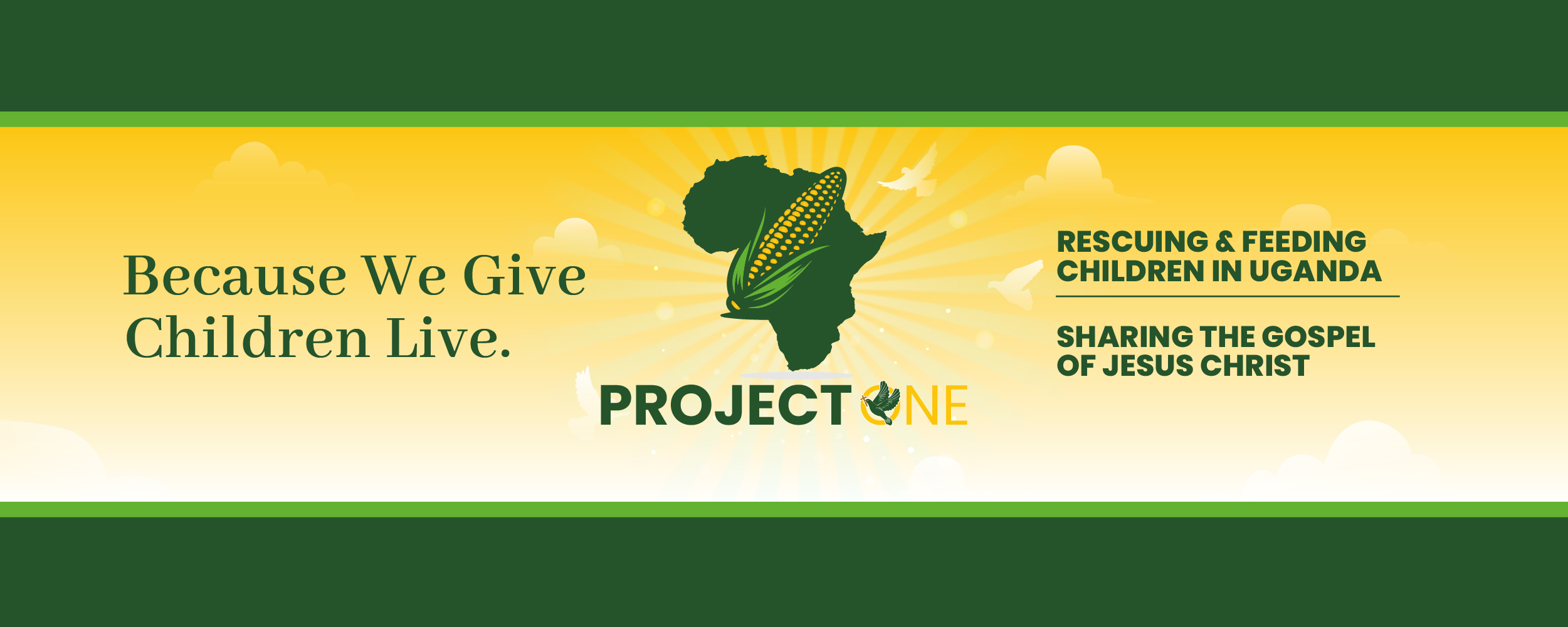 Project One exists for one urgent purpose and one eternal purpose: to keep children alive while bringing them the Gospel of Jesus Christ. Project One is built on one simple idea: because we give, children live.